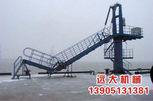 登船梯是現(xiàn)代各種大型碼頭在船舶停泊后,碼頭作業(yè)過程中,碼頭作業(yè)人員和船員安全順利上下船舶的專用設(shè)備。對(duì)于5萬噸級(jí)以上碼頭,油輪上自帶舷梯難以形成岸與船的安全通道,因此登船梯成了大型碼頭不可缺少的關(guān)鍵設(shè)備。